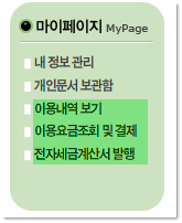 | ¹ß±Þ¹ÞÀ¸·Á¸é ¸¶ÀÌÆäÀÌÁö ¸Þ´ºÀÇ [ÀÌ¿ë¿ä±ÝÁ¶È¸ ¹× °áÁ¦]¸¦ Ŭ¸¯ÇÕ´Ï´Ù. |