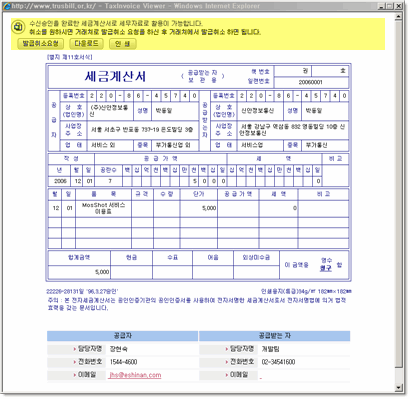 | - ÀüÀÚ¼¼±Ý°è»ê¼´Â ¹ßÇà½ÅûÈÄ 2~3½Ã°£ ÈÄ¿¡ ¹ßÇàµÈ ÀüÀÚ¼¼±Ý°è»ê¼¸¦ È®ÀÎÇÒ ¼ö ÀÖ½À´Ï´Ù. |