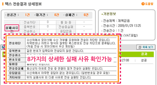 ¢º »ó¼¼ÇÑ Àü¼Û°á°ú È®ÀÎ: »ó¼¼Àü¼Û°á°ú È®ÀÎ ½Ã 8°¡ÁöÀÇ ½ÇÆÐ »çÀ¯¸¦ È®ÀÎ ÇÒ ¼ö ÀÖ¾î º¸´Ù »ó¼¼ÇÑ Àü¼Û°á°ú È®ÀÎÀÌ °¡´ÉÇÕ´Ï´Ù. |