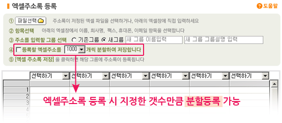 ¢º ¿¢¼¿ ÁÖ¼Ò·Ï ºÐÇÒ µî·Ï: ¿¢¼¿ÁÖ¼Ò·Ï µî·Ï ½Ã ÁöÁ¤ÇÑ °³¼ö¸¸Å ºÐÇÒÇÏ¿© µî·ÏÀÌ °¡´ÉÇÕ´Ï´Ù. |