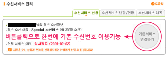 4. ¼ö½Å¼ºñ½º - ¼ö½Å¼ºñ½º¸¦ º¸´Ù Æí¸®ÇÏ°Ô ¿¬Àå, º¯°æ, ½Åû ÇÏ½Ç ¼ö ÀÖ½À´Ï´Ù. ¢º ¼ö½Å¼ºñ½º ½Åû: ¼ö½Å¼ºñ½º Á¾·áÀÏ¿¡ ¸ð¾Æ¼¦¸Ó´Ï°¡ ºÎÁ·ÇÏ¿© ¼ö½Å¼ºñ½º°¡ ÇØÁöµÈ ÈÄ Àç ½ÅûÇÒ °æ¿ì¹öư Çѹø Ŭ¸¯À¸·Î °£ÆíÇÏ°Ô ±âÁ¸ ¹øÈ£ ±×´ë·Î ½ÅûÀ» ÇÒ ¼ö ÀÖ½À´Ï´Ù. |