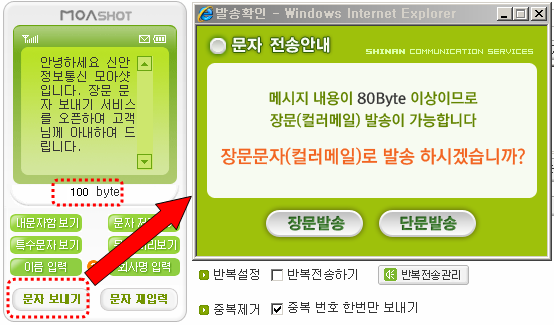 | ´Ü¹® ¹®ÀÚ º¸³»±â¿¡¼ 80byte ÀÌ»óÀÇ ³»¿ëÀ» ÀÔ·ÂÇÏ¿© Àü¼ÛÇÒ °æ¿ì ¾Æ·¡¿Í °°ÀÌ ´Ü¹®/Àå¹®À» |