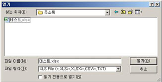 | ÁÖ¼Ò·Ï µî·Ï½Ã MS Office Excel 2007·Î ÀÛ¼ºµÈ(xlsxÈ®ÀåÀÚ) ÁÖ¼Ò·Ï ÆÄÀÏÀ» ¸ð¾Æ¼¦ ÁÖ¼Ò·Ï¿¡ |