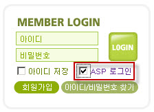 - ·Î±×ÀÎ⠾Ʒ¡ÀÇ ASP ·Î±×ÀÎ Ç׸ñ¿¡ üũ°¡ µÇ¾îÀÖ´ÂÁö È®ÀÎÇÏ¿© ·Î±×ÀÎÇÕ´Ï´Ù.