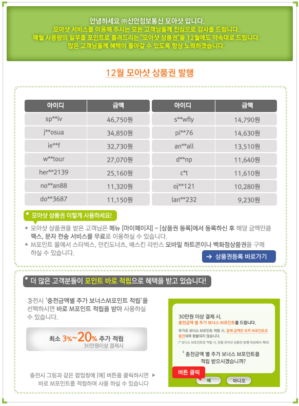 12¿ù ¸ð¾Æ¼¦»óǰ±Ç ¹ßÇà¾È³»
